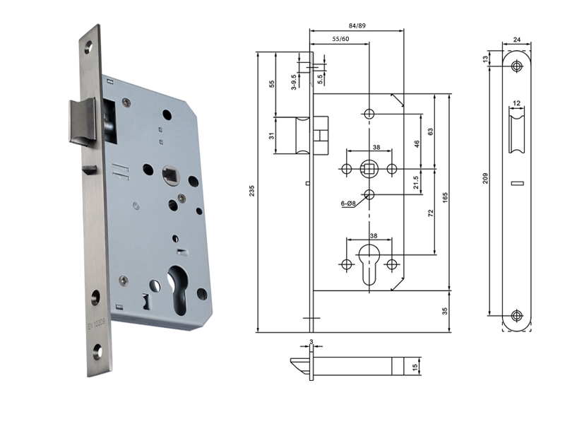 RML-26 5572/6072CR 教室锁体:主要用在学校教室门。但无论门外是否上锁,门内都可以用把手开门,
