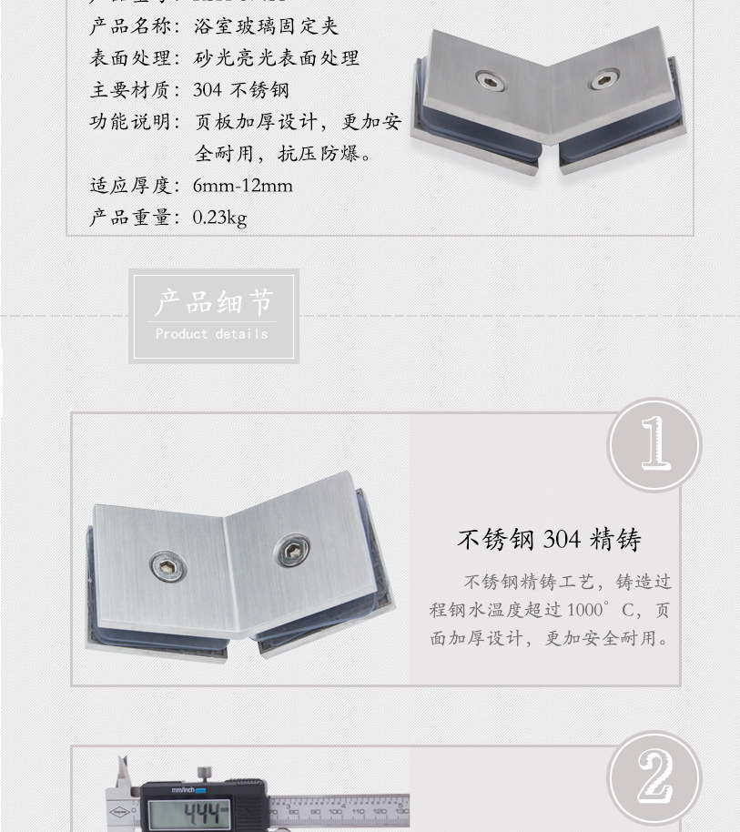 2、主要用于各种玻璃门、淋浴房门等。夹6-12mm玻璃