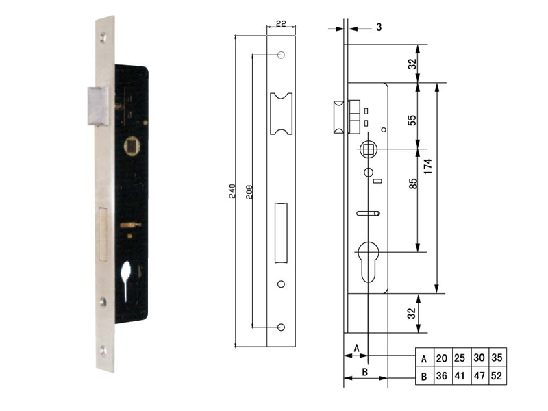 25mm backset Stainless Steel Standard Mortise Type Door Lock Body
