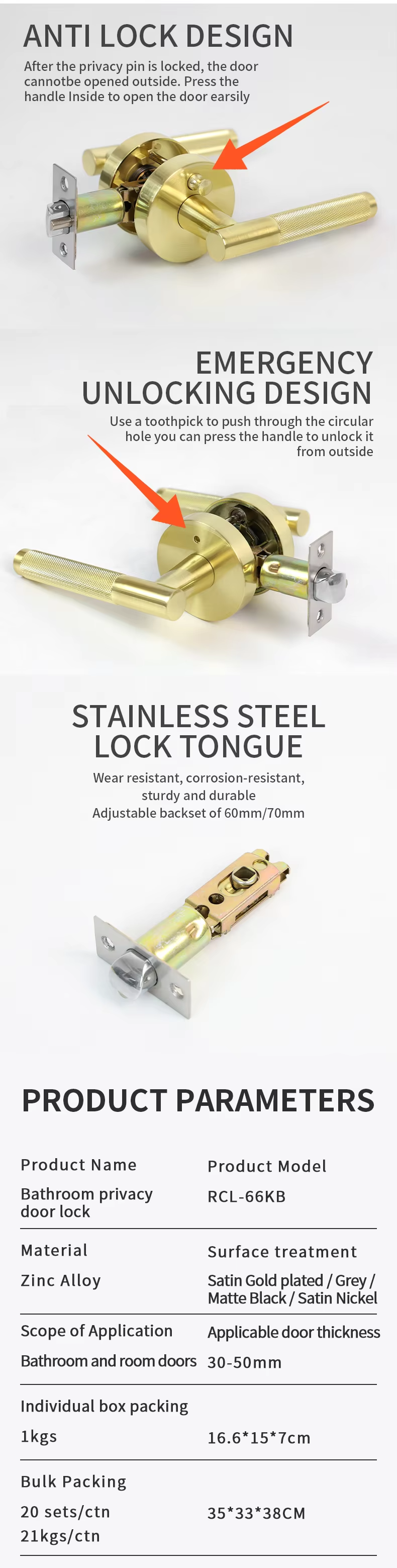 RCL-66BK Supply Australia Export Quality Bathroom Privacy Keyless Door Handle