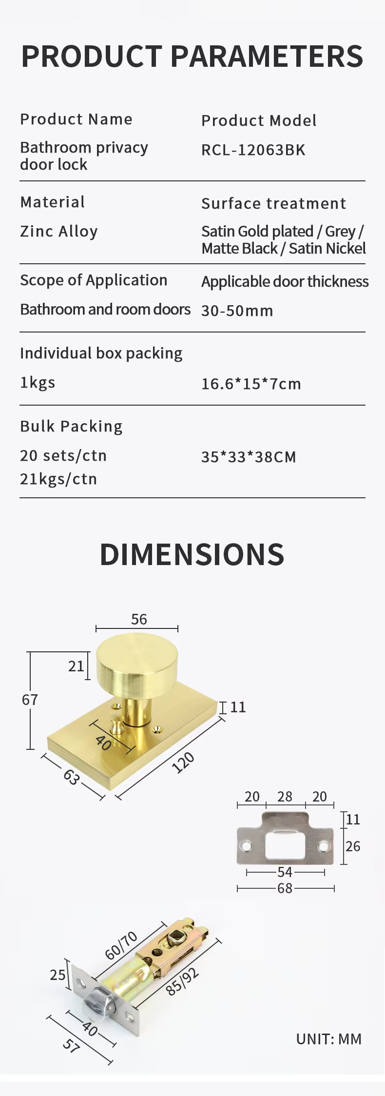 RCL-12063BK Zinc Alloy Cylindrical Knob Privacy Emergency Unlock Bathroom Lock