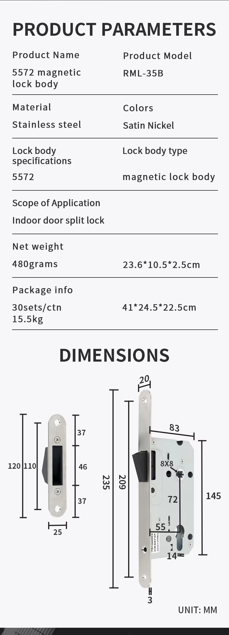 RML-35B 5572 Mortise Magnetic Latch Lock Body