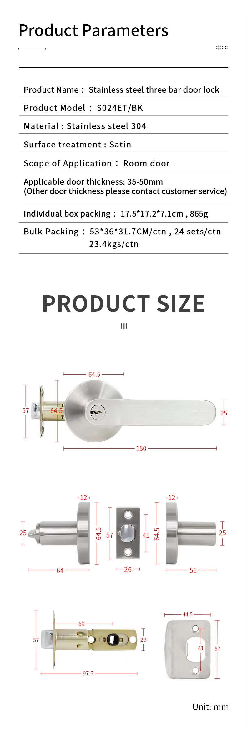 S024 American Bathroom Solid Stainless Steel 304 Brushed Lock